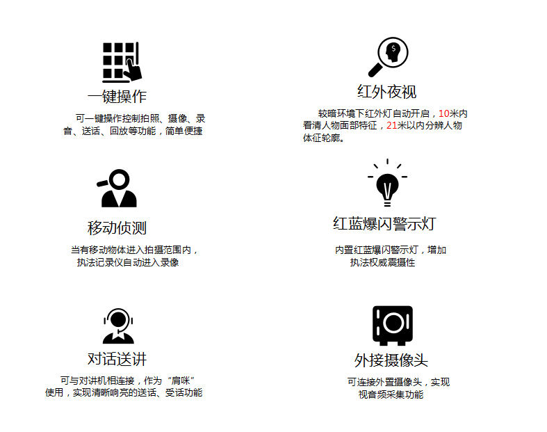 QY千亿球友会QYDSJ-200F 执法仪(法院/政府/城管)拍摄像素高达5000万,广角镜头137,拍摄画面精细而全面,大容量电池支持陆续在工作12小时不断电